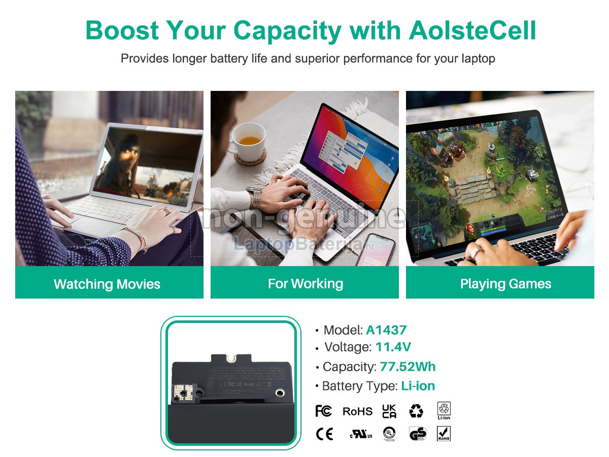 laptopbaterija.hr razumije da je sigurnost baterije veoma važna. Čvrsto smo predani tomu da ne koristimo niže kvalitetne sirovine! Svaka zamjenska baterija Apple MacBook Pro Core I7 3.0GHZ 13.3 inch Retina A1425(EMC 2672) strogo se ispituje stotine puta prije napuštanja tvornice kako bi se osigurali standardi visoke kvalitete. Mi strogo kontroliramo kvalitetu baterije, svaka baterija za laptop Apple MacBook Pro Core I7 3.0GHZ 13.3 inch Retina A1425(EMC 2672) prošla je CE, UL, ROHS, ISO9001 i druge certifikate o državnoj sigurnosti. Ne samo da je 100% kompatibilna već ima i pametnu zaštitu od sigurnosnih problema kao što su pretjerano punjenje, pretjerano pražnjenje i pregrijavanje. Pored toga, naš tehnički tim će, također, ispitati napon i kapacitet baterije prije isporuke kako bi osigurao da baterija koju primite radi ispravno.