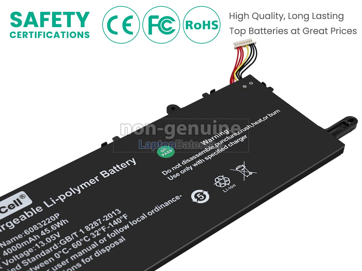Baterija za prijenosna računala CHUWI 6083220P prihvaća nove uvezene stanice baterije, pouzdanu kvalitetu, izvrsne izvedbe kao i dulju uporabu. Pored toga, ljuska zamjenska baterija CHUWI 6083220P napravljena je strogo sukladno s izvornim oblikom baterije 1:1 uporabom legirani ekološki materijali ABS+PC otporne na temperaturu i trošenje kako bi savršeno odgovarala vašoj opremi i donijela vam savršeno iskustvo uporabe.